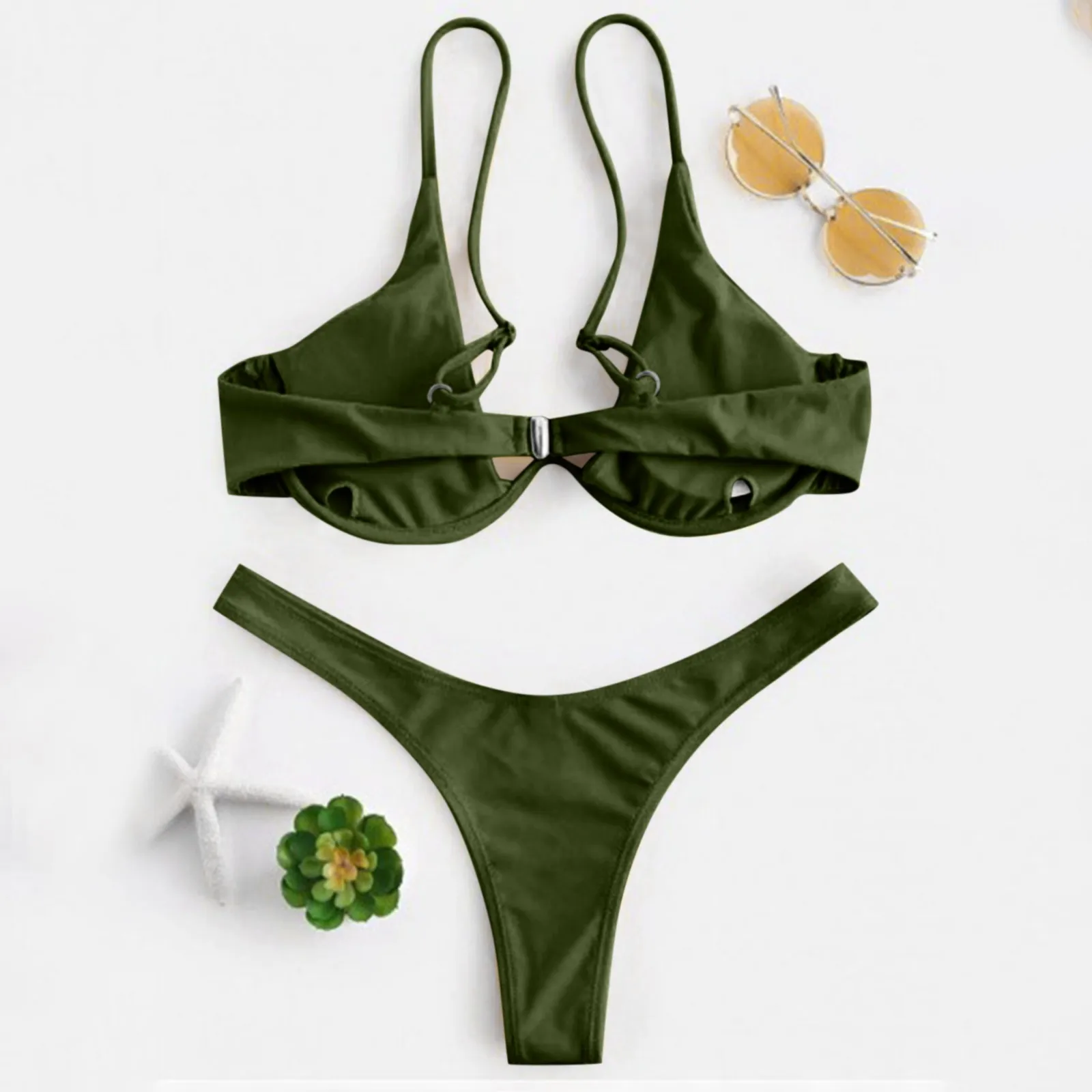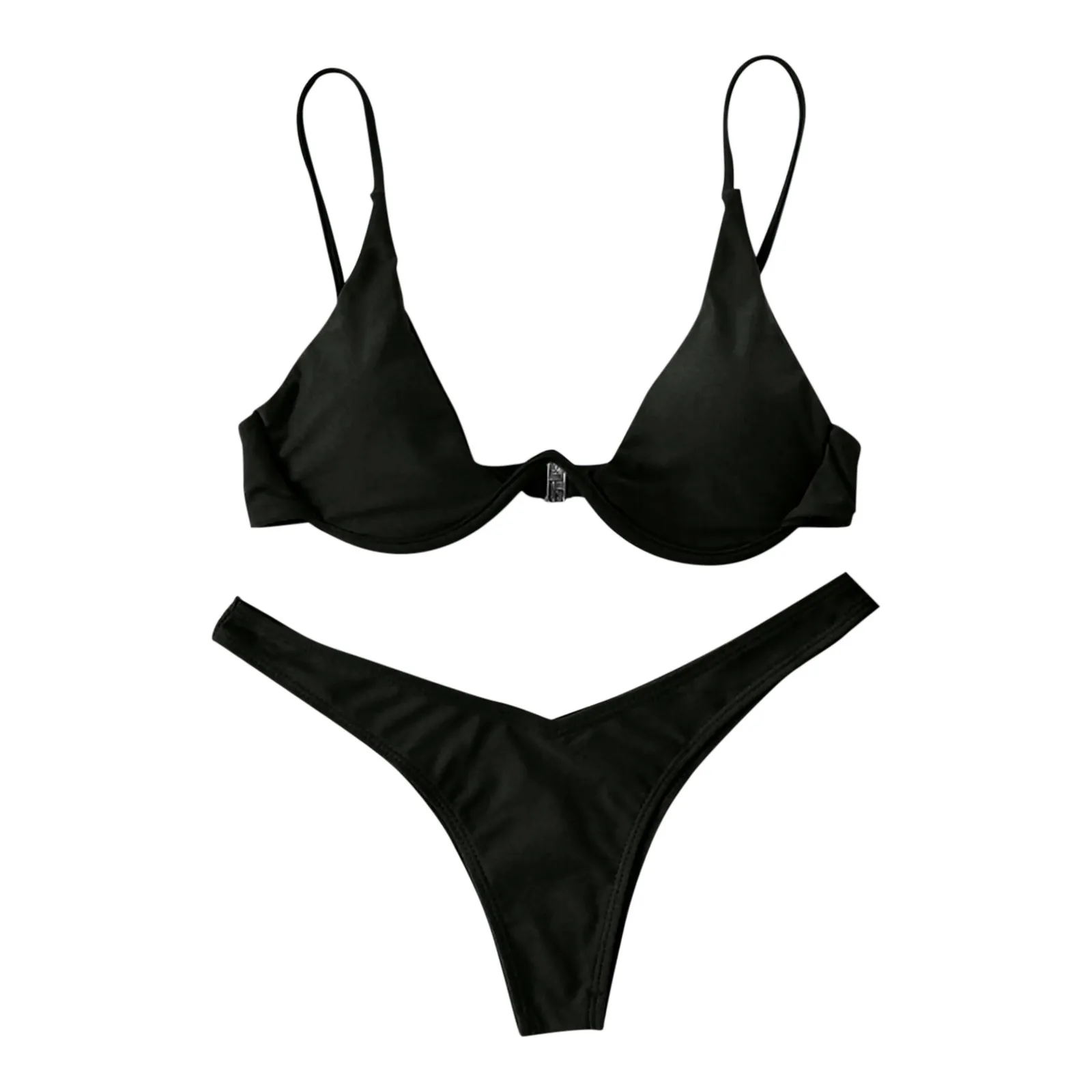 Maiô estilo dividido de cor sólida feminino, biquíni de peça de reboque com suporte de aço, maiô sexy para adolescentes, 2022