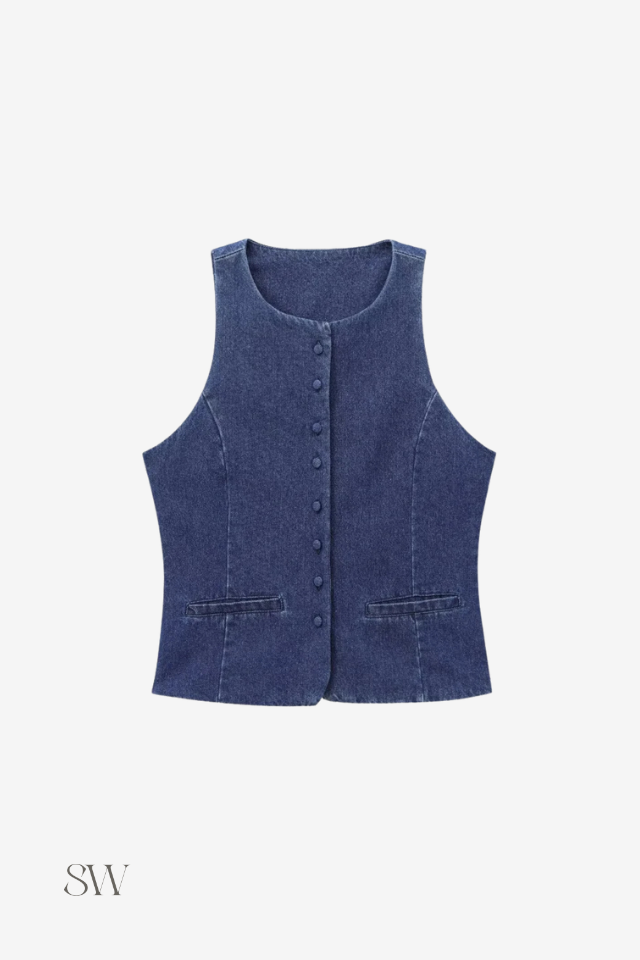 Jaqueta Jeans Sem Manga